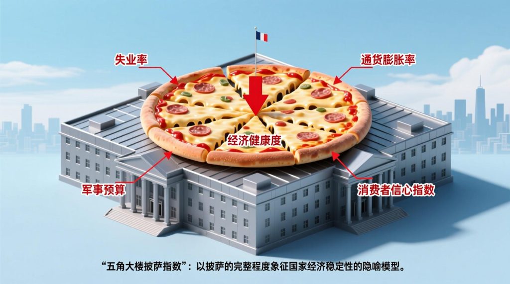 “五角大楼披萨指数”(Pentagon Pizza Index)是一个非官方、带有民间观察性质的另类指标,用于通过监测美国国防部(五角大楼)周边披萨店的外卖订单数量变化,来推测美国军方或政府是否正在加班、准备重大行动,甚至可能预示即将发生的军事或地缘政治事件。