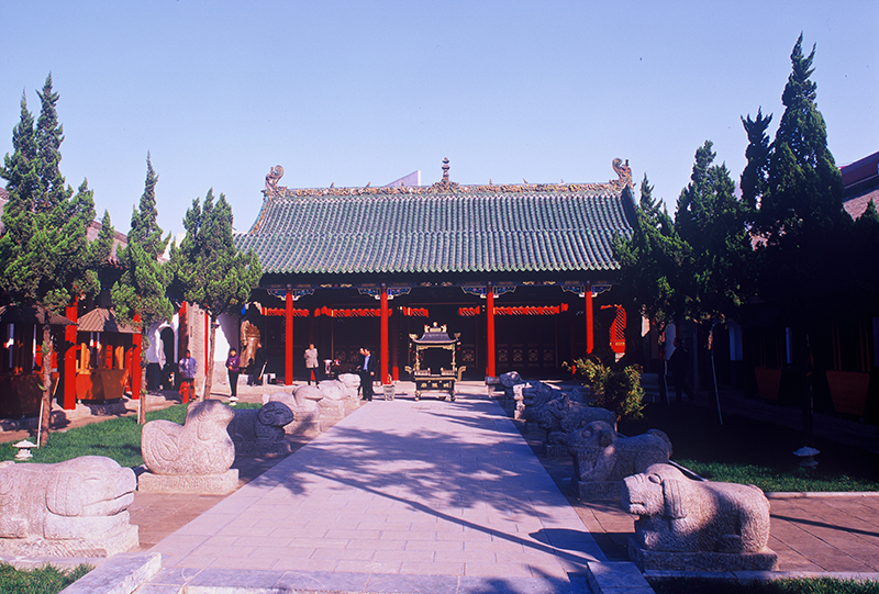 城隍庙是河南省重点文物保护单位,位于郑州市商城路中段。城隍庙始建于明朝洪武年间,弘治十四年(1501)重修,后代屡有修葺。2004年进行整修,面积6500平方米。郑州城隍庙距今已有600多年的历史。城隍庙坐北朝南,现存有大门、仪门、戏楼、大殿、拜厦、后寝殿等主体建筑,大门和仪门为悬山式建筑,戏楼为歇山式高台楼阁。城隍庙整体建筑风格、造型艺术和雕刻装饰充分体现中原地方特色,是郑州市现存最大的一组明清时期的古建筑群。每年春节期间举办的城隍庙会热闹非凡,有豫剧、杂耍表演和民间工艺展示等活动,吸引了大批逛庙会的游人。城隍庙现已成为展示郑州民俗文化的重要窗口。